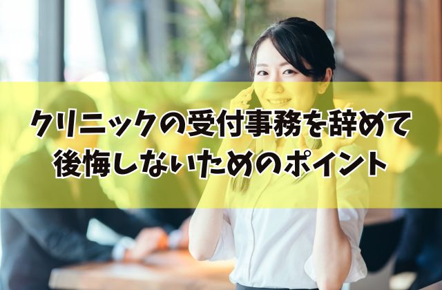ここでは、クリニックの受付事務を辞めて後悔しないために考えておきたいポイントを紹介します。